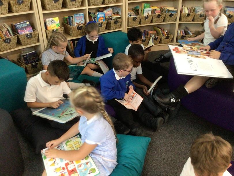 Children access the school library each week with their class and choose a book to take home. Children who are still accessing the phonics programme will also bring home a book matched to their colour group. Books are changed weekly so that children have chance to re-read the book to build up their accuracy and fluency.